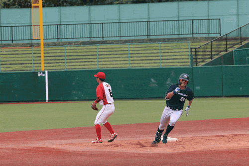 続く8番・新出篤史選手がレフトへ大きなフライを飛ばし、3塁から山田知輝選手がタッチアップ!