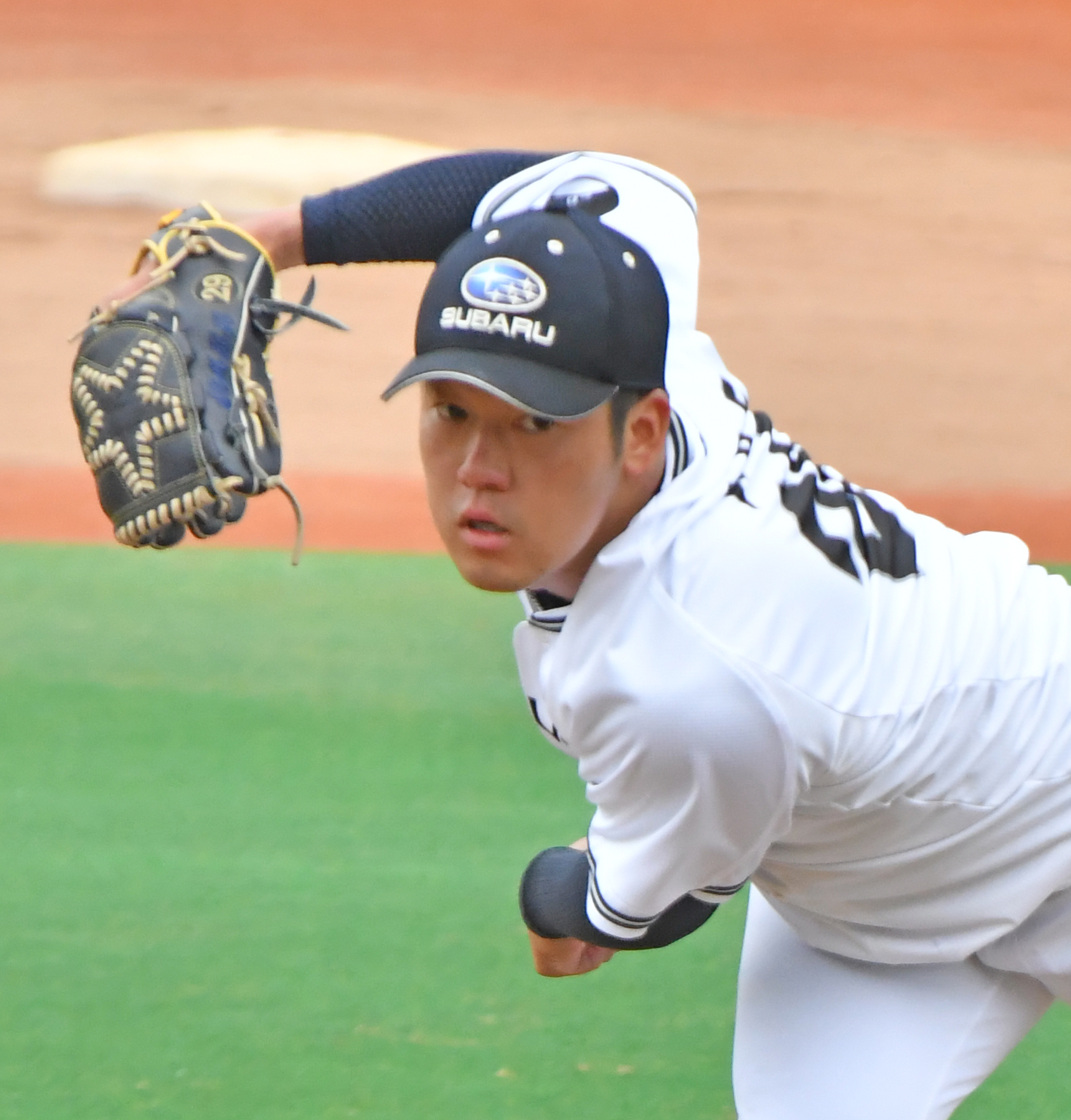SUBARU先発は阿部博光投手。セガサミーは草海光貴(くさがい・みつたか)投手を起用。エース同士の対決となりました。