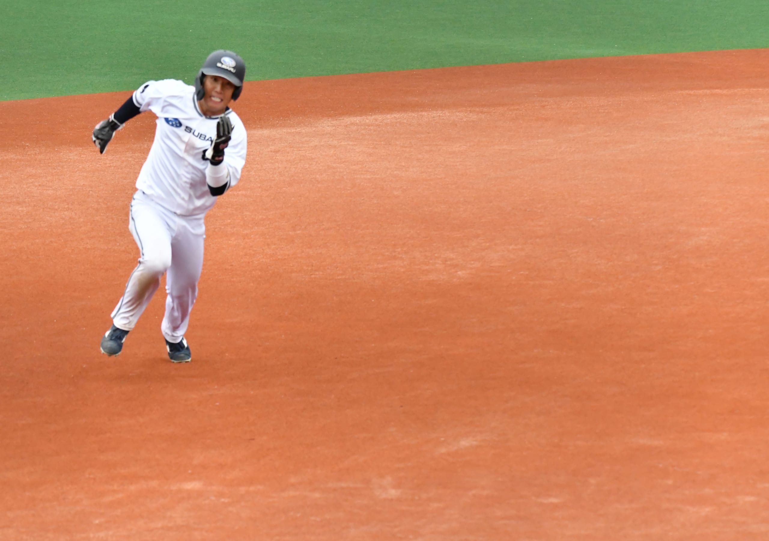 海老根選手、俊足ぶりを発揮し、全速力で3塁へ向かいます!