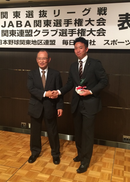 優秀選手賞を受賞した田辺が所用で出席できなかったため代理で受賞した マネージャー矢島
