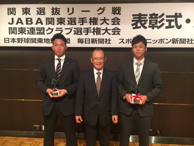 弊社野球部から田辺内野手が優秀選手賞、飯野(奨)投手が優秀投手賞に選出されました。
