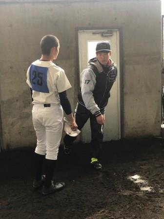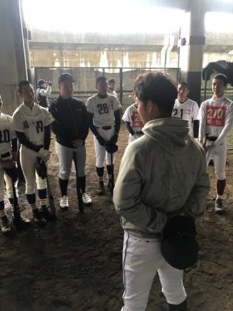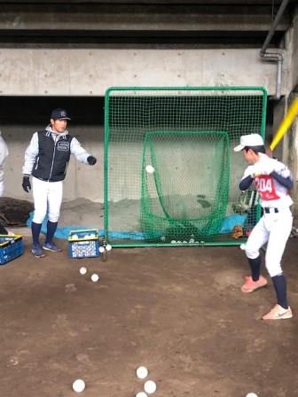 雨の中室内投球練習場にてピッチング、バッティング、トレーニングと技術を中心に指導させて頂きました。