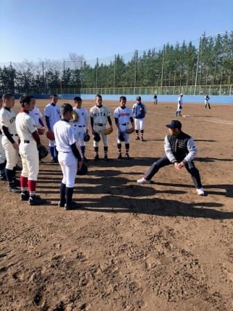 バッテリーを中心に普段行っている練習、トレーニングを中心に実施させて頂きました。