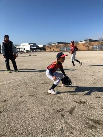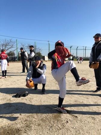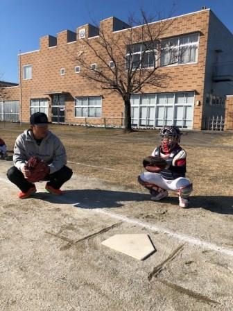 午前9時~ウォーミングアップから始まり、キャッチボール、ポジション別指導、打撃練習が行われ、寒空の下、真剣なまなざしで