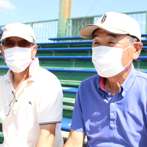 冨村監督の父・冨村俊彦さんは友人の上條博さんと並んで観戦です。