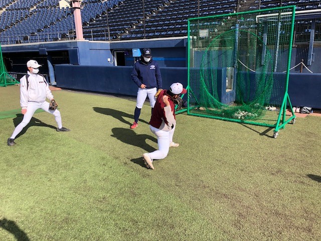 また、バッティング指導の時に、高校生 VS SUBARU選手でロングティーによるどちらが遠くに飛ばせるか