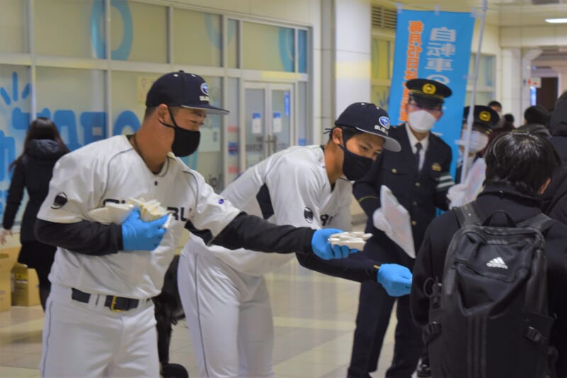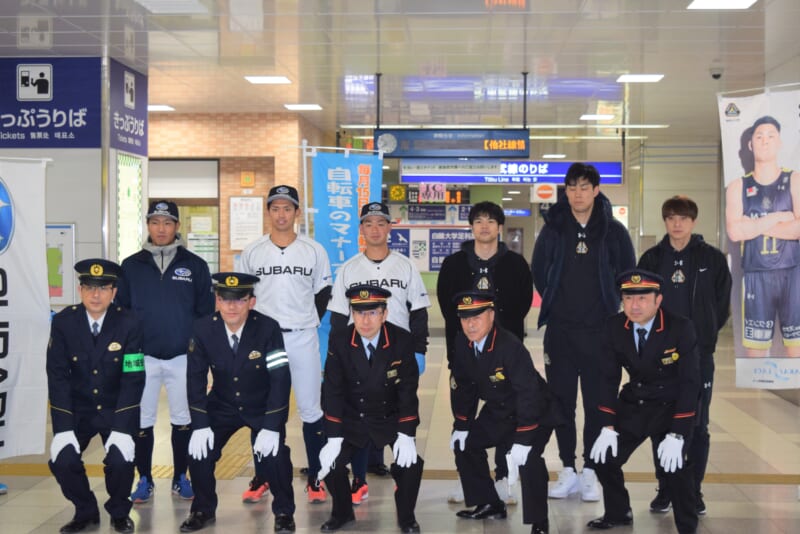 2021年12月23日(木)太田駅にて硬式野球部、群馬クレインサンダーズ、太田市警察署、地域鉄道会社で交通安全啓発を実施致しました。太田駅を利用する方に、交通安全を呼びかけました!!!