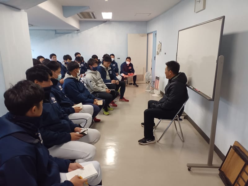 また、昨日に引き続き谷繁さんに指導をいただき、昼食後にはこれまでの経験を踏まえてのお話し、目標設定の大切さなどを講義いただきました。最後に、選手たちから質問も多く飛び出し、有意義な時間となりました。