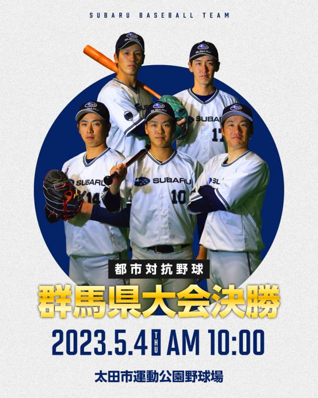 群馬県予選決勝(都市対抗1次予選) は #太田市運動公園 で5月4日(木・祝)10:00- #日立市長杯 で打ちまくって 首位打者賞の #小玉佳吾 選手も、東京ドームに向けてさらにパワーアップ中#タフネス小玉 #SUBARU硬式野球部 #社会人野球 pic.twitter.com/QH8Isdeep9— SUBARU硬式野球部 (@SUBARUbbt) April 24, 2023