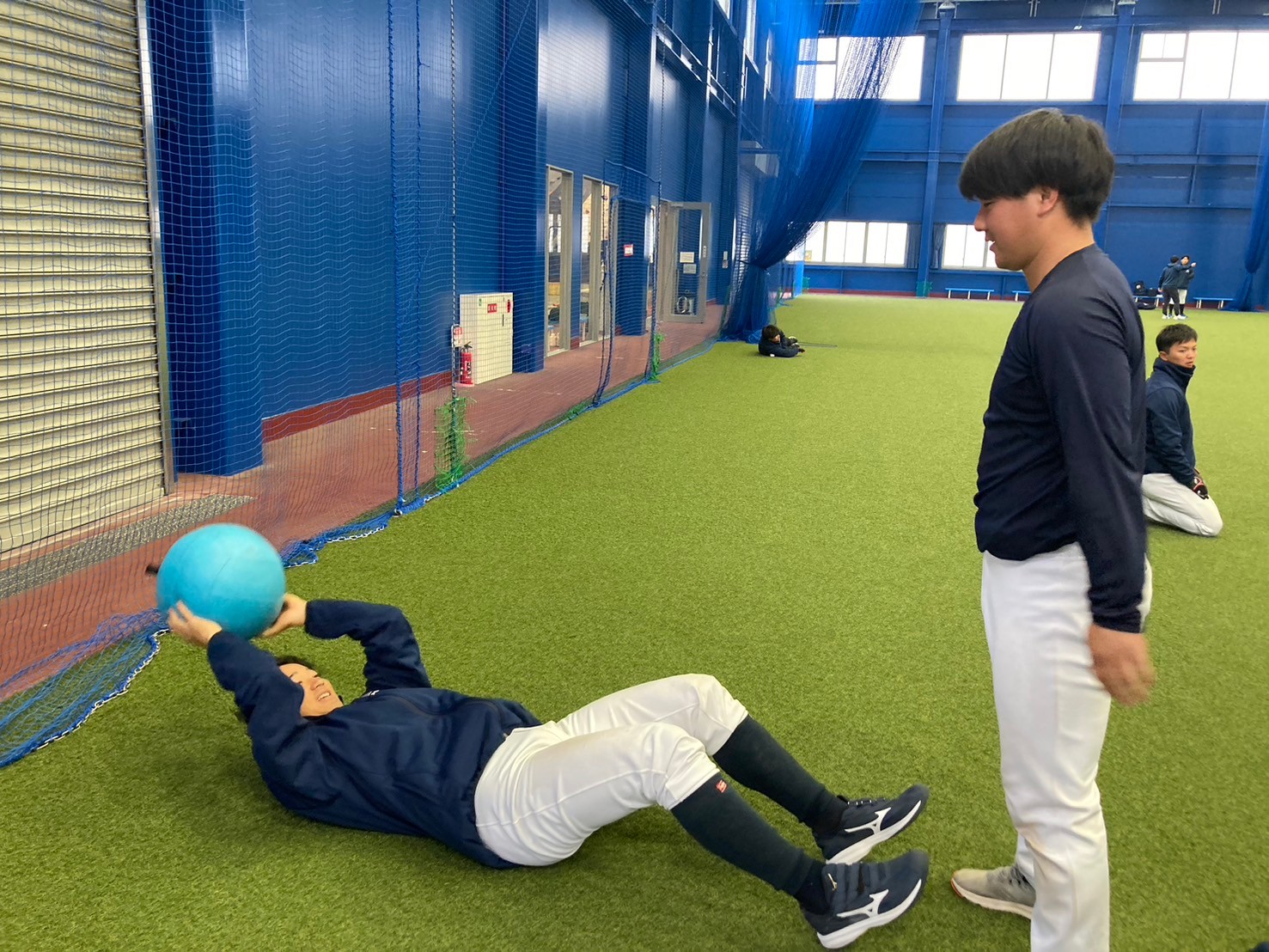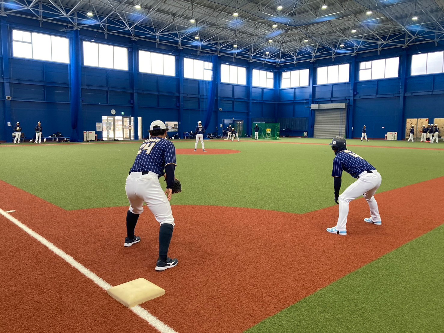 午前中は守備メインで連携などに時間を費やし、午後から投手はブルペンでの投球練習とトレーニングを実施。