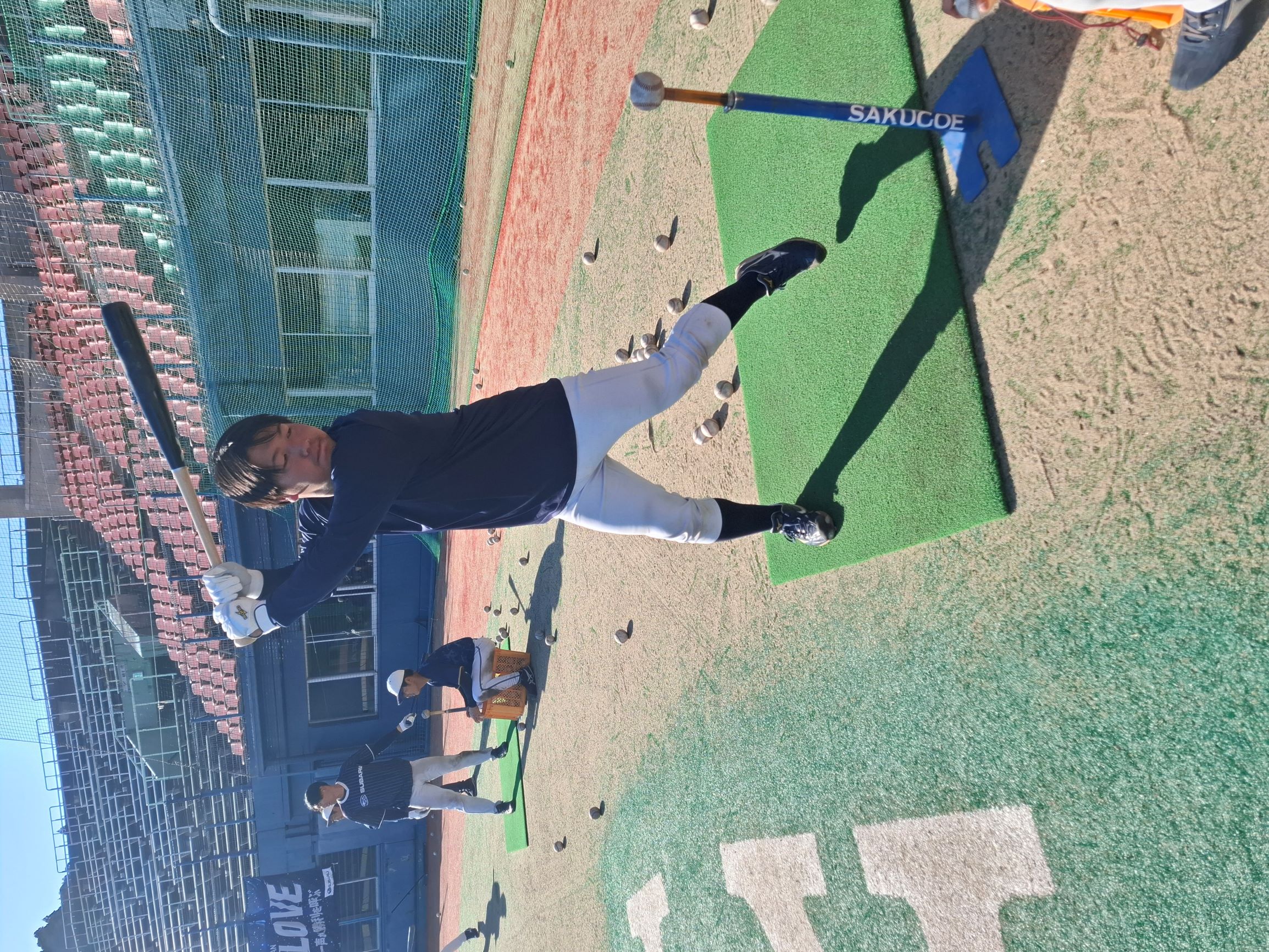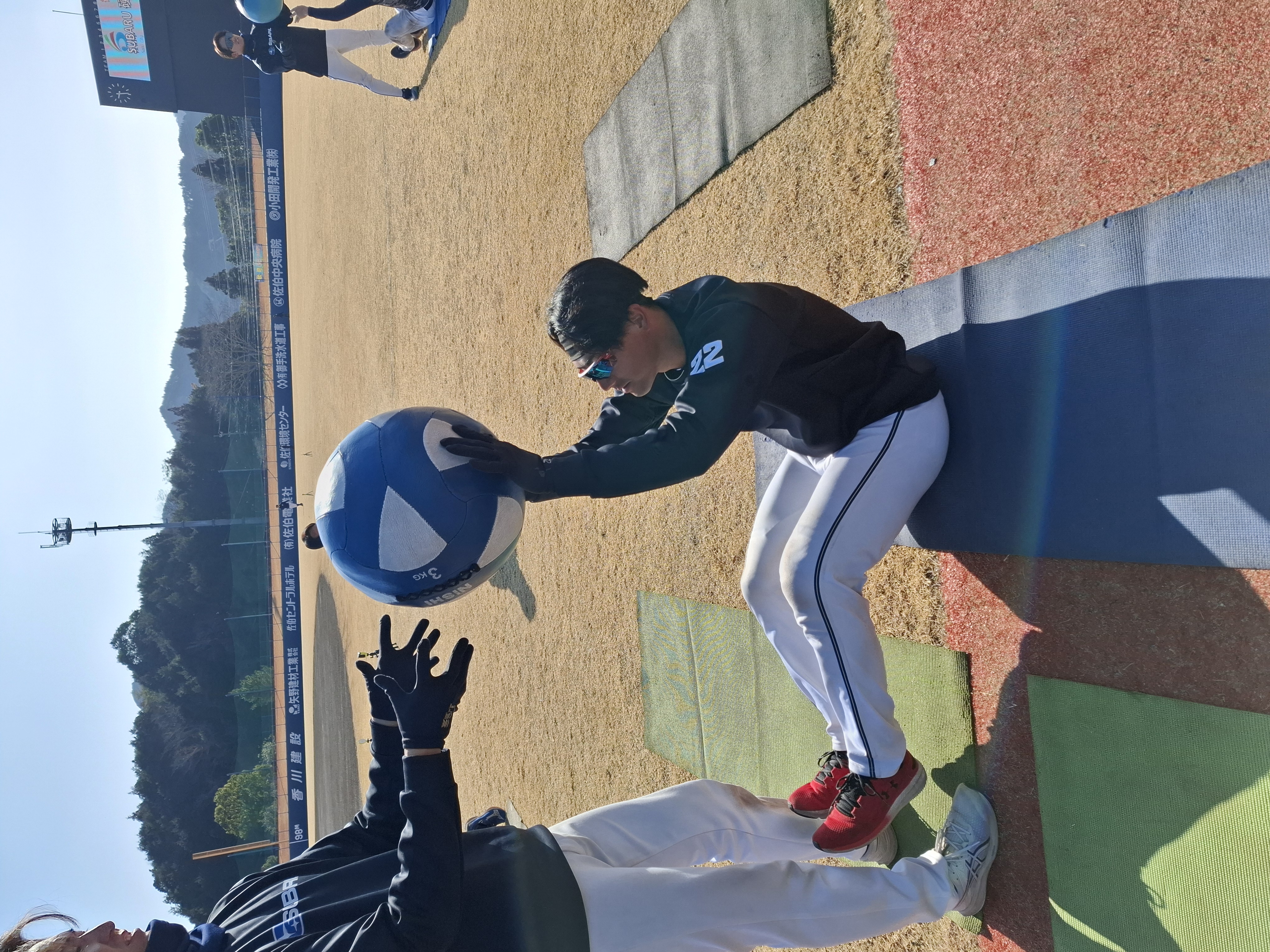 4年連続で福岡から駆けつけていただいた楢崎さん(2000年入社:左の強打者)は、手の皮がむけながらも日が暮れるまでノックや打撃投手を務めていただきました。感謝を申し上げるとともに、必ず結果で恩返しをしたいと思います。